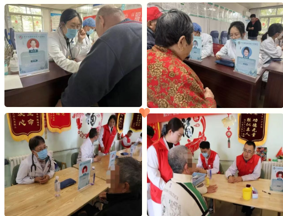 眼科医生为老人进行视力筛查和眼底检查,重点排查白内障、青光眼、胬肉等老年性眼病。