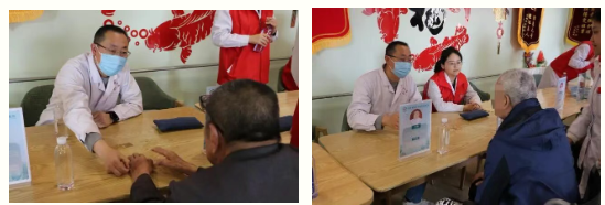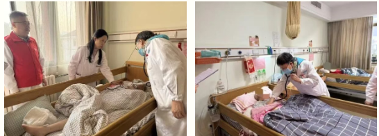 专家们耐心地为卧床老人进行心肺听诊、体格检查、评估压疮风险、细致查看病历,并与养老机构护理人员深入沟通,指导日常护理和康复要点。
