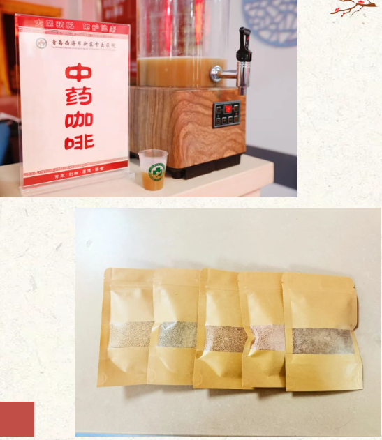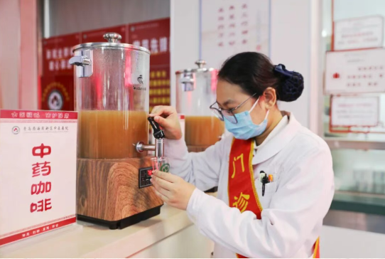 近日,青岛西海岸新区中医医院以中医药养生理论为重要依据,结合秋冬时令健康与现代生活需求,挖掘二十四节气养生理念,在门诊首批推出两款中医生活化创意新品“中医药+咖啡”,“枣香美式”与“暖姜云朵拿铁”,供前来就诊的市民免费品尝、饮用,满足群众对健康多元化的需求与追求。两款中药咖啡分别具有补气养血、健脾和胃和解表散寒、缓解疲劳、提神醒脑等功效,可在医护人员的指导下品尝。