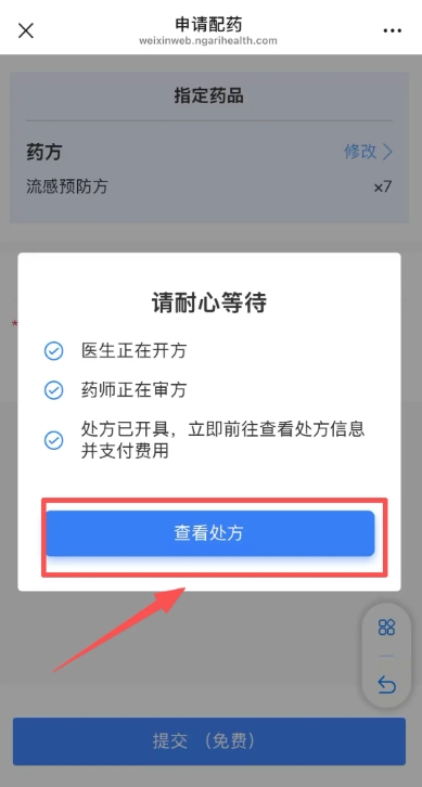 2.选择就诊人,点击提交,提交后需要等待开方。