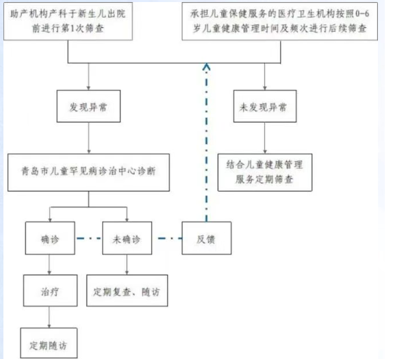 早筛早诊助力及早发现型神经纤维瘤病及其并发症,提供宝贵早期干预窗口改善患儿生活质量和预后。新生儿在助产机构出院前完成首次皮肤筛查,0~6岁儿童在常规健康检查中持续观察皮肤表现,同时患者及家属自查发现异常时也应引起足够重视。若发现≥6个直径>5mm的咖啡牛奶斑或腋窝/腹 股沟雀斑等典型体征,可到我院儿科门诊进行初筛,如符合诊断标准,应转诊至青岛市儿童罕见病诊治中心(青岛妇女儿童医院)就诊。