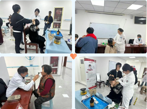 2025年4月27日、11月14日,科室分别在刘王大庄社区免费义诊,眼科负责人申加华通过裂隙灯为社区居民进行初步眼科检查,并详细讲解白内障等疾病的手术过程及注意事项。