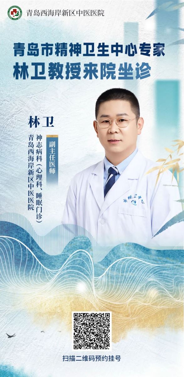 青岛市精神卫生中心睡眠医学科副主任林卫教授应邀到青岛西海岸新区中医医院神志病科(心理科、睡眠门诊)开展诊疗活动,主要解决睡眠障碍、焦虑抑郁、双向情感障碍、强迫障碍等。