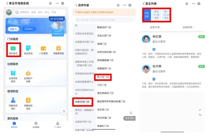 · 预约挂号流程:预约挂号→本部专病门诊→老年肌少症专病门诊→选择时间、专家即可。