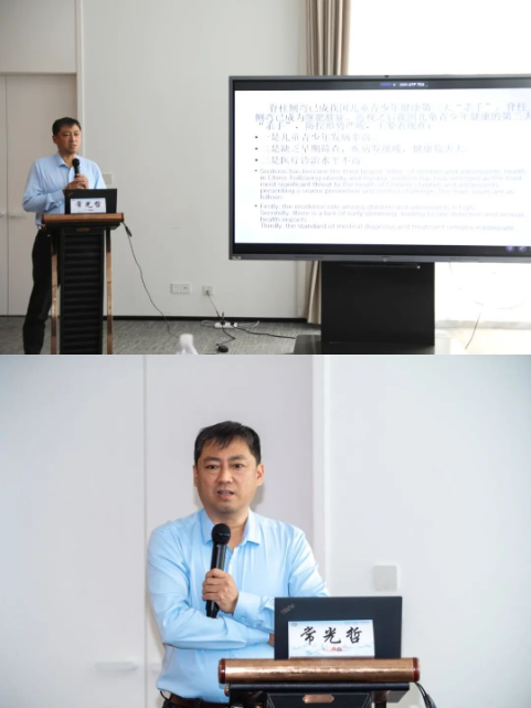 山东中医药大学第二附属医院康复医院执行院长常光哲在《AI筛查助力青少年脊柱侧弯临床防治思路探讨》的报告中,从青少年脊柱侧弯的现状分析到诊疗方案,层层递进。他不仅揭示了疾病的严峻形势与深层病因,更重点分享了如何融合现代科技,构建系统化的临床诊疗新路径。