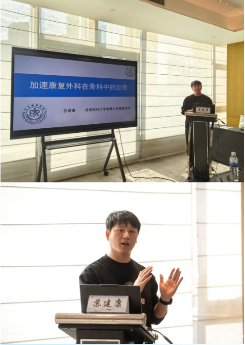 首都医科大学附属北京康复医院主管治疗师苏建康以《加速康复外科在骨科康复中的应用》为题,系统阐述了ERAS在围手术期的核心理念与重要性,并以髋关节置换术为生动范例,具体展示了康复干预的全程介入模式,凸显了康复治疗在提升手术效果、加速患者功能回归中的关键价值。