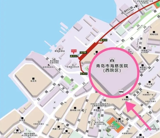 △ 医院坐落于地铁2号线西延段,图为线路平面示意图
