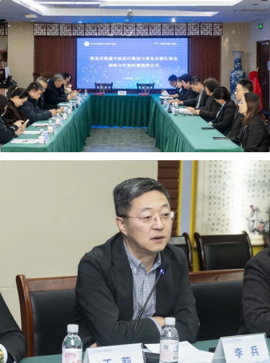 12月5日上午,青岛市海慈中医医疗集团与青岛市浙江商会战略合作签约仪式在集团隆重举行,标志着双方携手开启医企协同、共促健康的新篇章。青岛市浙江商会会长何圣忠带领18位骨干企业家出席,海慈中医医疗集团党委书记、总院长李兵,集团党委副书记、院长、集团常务副总院长孙金芳等出席仪式。会议由集团党委委员王莉主持。