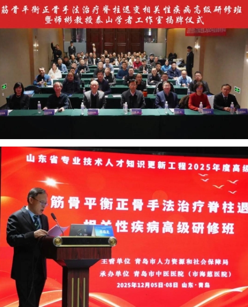 为进一步规范完善筋骨平衡正骨手法在脊柱退变相关性疾病的治疗策略,提高从业人员诊疗水平,近日,由青岛市人力资源和社会保障局主办,青岛市海慈中医医疗集团承办的“筋骨平衡正骨手法治疗脊柱退变相关性疾病省级高级研修班”成功举办。青岛市人力资源和社会保障局相关处室负责人莅临研修班现场指导。