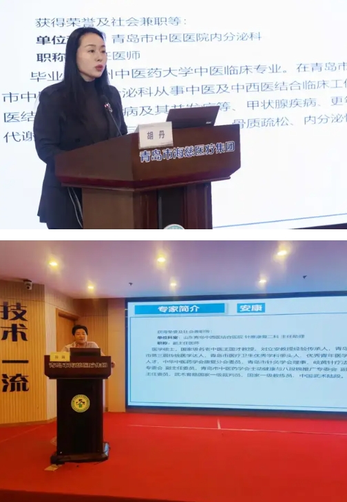 学术会议由青岛市中医药学会基层中医药专业委员会主任委员胡丹、青岛市中医药学会主动健康与八段锦推广专业委员会主任委员孙炜、青岛市中西医结合学会办公室主任李捷分别主持。
