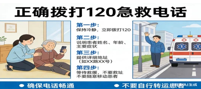 三是及时呼叫救援:确认患者需紧急医疗救助后,立即拨打120急救电话,精准上报事发位置及患者状态,同步寻求专业医疗支援。