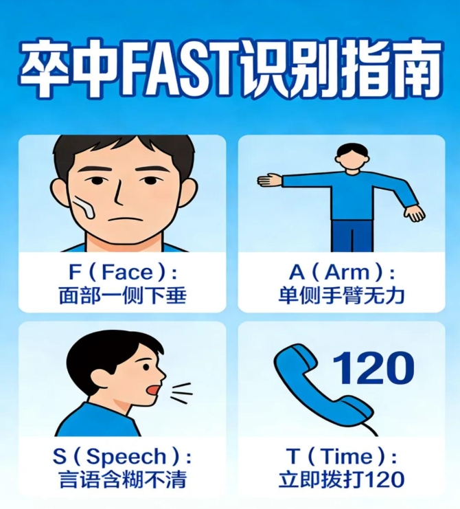 4. T(Time,时间):一旦出现以上任何症状,立即拨打 120,记录症状出现的时间,为急救争取黄金窗口。