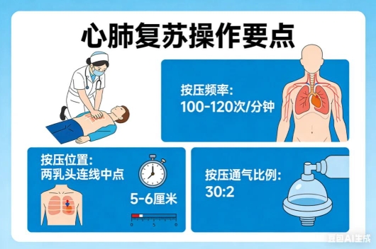 心肺复苏术是挽回猝死的第一利器。数据显示,心脏骤停4分钟后,脑组织便开始发生不可逆的损伤。而在1分钟内实施有效心肺复苏,抢救成功率高达90%。此后每延迟1分钟,成功率下降约10%。时间就是生命,早一秒按压,就多一分希望。