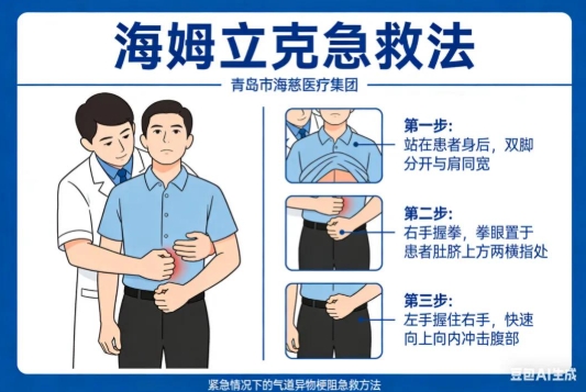 1.成人/儿童(1岁以上):施救者站在患者背后,拳眼对准肚脐上方两横指处,另一手包住拳头快速向内上方冲击,重复至异物排出;若独自被噎,可弯腰靠椅背,用同样手法自救。