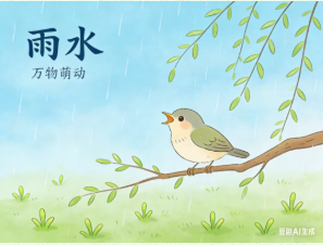 雨水有三候,“一候獭祭鱼,二候鸿雁来,三候草木萌动。”此时水獭开始捕鱼,大雁自南向北归,草木随春雨滋润抽出新芽,天地间阳气渐升,生机勃发。