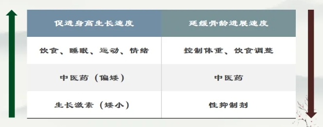 以中医辨证为基础,通过中药汤剂、浓煎剂、膏方等,运用健脾、补肾、揉肝、养心等治法进行调理,以改善体质为基础,达到“脾肾互赞、上下相资”的状态,增强生长发育的内在动力。