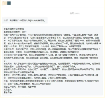 字里行间满是患儿家属的感激