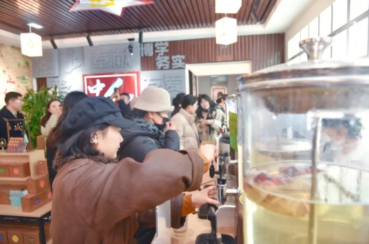 现场熬制石斛麦冬清燥饮、罗汉金银舒润饮、菊花参杞舒润饮三款经典中药茶饮,对症春日嗓子干痒、口鼻干燥、肝气不舒,老少皆宜;更有创新养生中药咖啡、护肝拿铁全新上线,玫瑰美式养颜又好喝,打破中药刻板印象,让年轻朋友也能爱上中医养生~ 所有茶饮、咖啡均免费品鉴,专业人员讲解药材搭配原理,读懂“药食同源”的养生智慧。